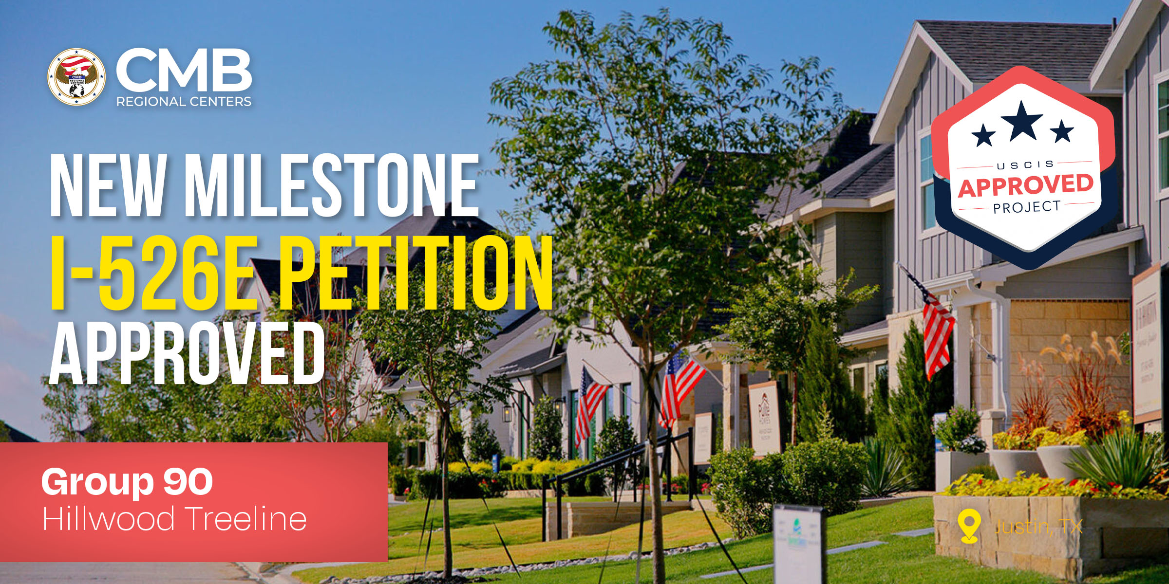 CMB Regional Centers (CMB), one of the most experienced regional center operators in the EB-5 industry, today announced the first I-526E approval for an investor in CMB Group 90 – Hillwood Treeline, one of CMB’s High-Unemployment Area (HUA) Targeted Employment Area EB-5 projects.