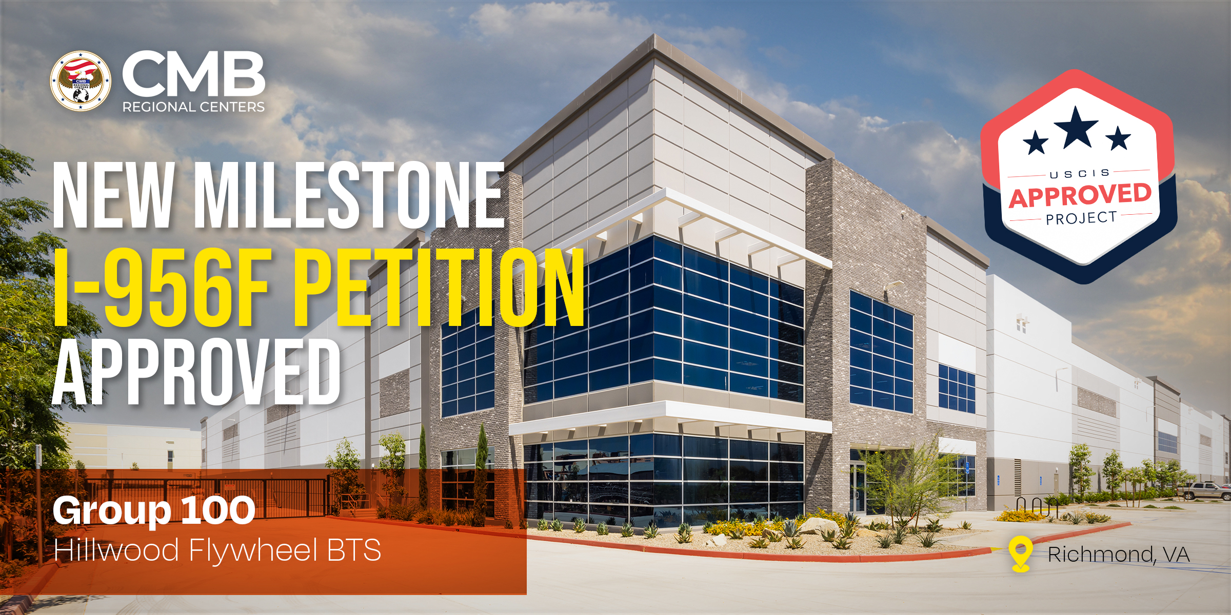 CMB Regional Centers (CMB), one of the most experienced Regional Center operators in the EB-5 industry, today announced that its Group 100 – Hillwood Flywheel EB-5 project has received I-956F approval from United States Citizenship and Immigration Services (USCIS). The approval marks CMB’s 93rd EB-5 project approval, upholding the Regional Center’s 100% approval rate on all projects that have been adjudicated by USCIS.